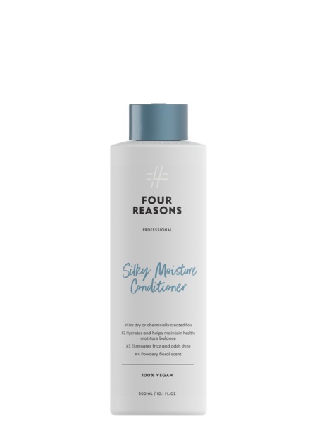 Four Reasons Professional Silky Moisture Conditioner -hoitoaine on parhaista raaka-aineista luotu ammattilaislaatuinen tuote. Sen koostumus on vegaaninen ja pakkaus kierrätettävä. Valmistettu Suomessa.